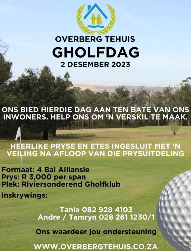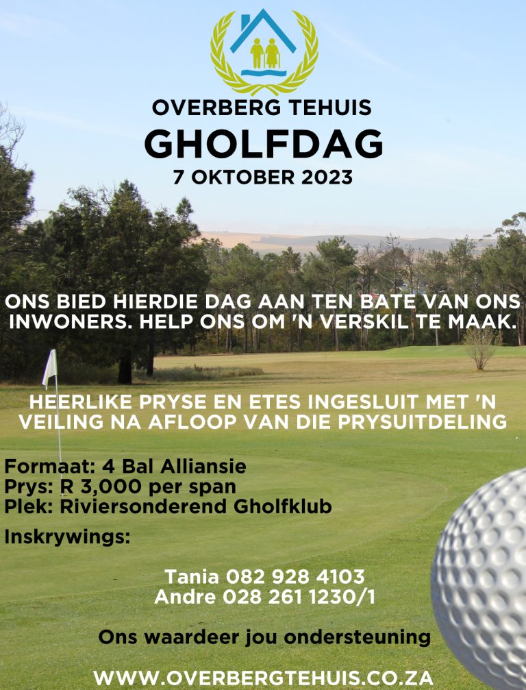 As gevolg van ‘n reeds deurnat baan en verdere erge reën wat vir Saterdag voorspel word, moet ons noodgedwonge die Gholfdag van Saterdag uitstel. Daar is besluit om dit uit te stel tot Saterdag 2 Desember 2023.