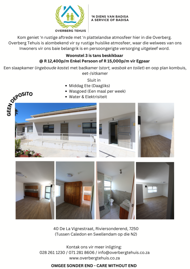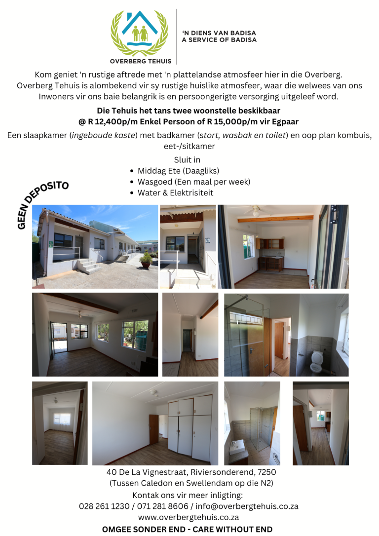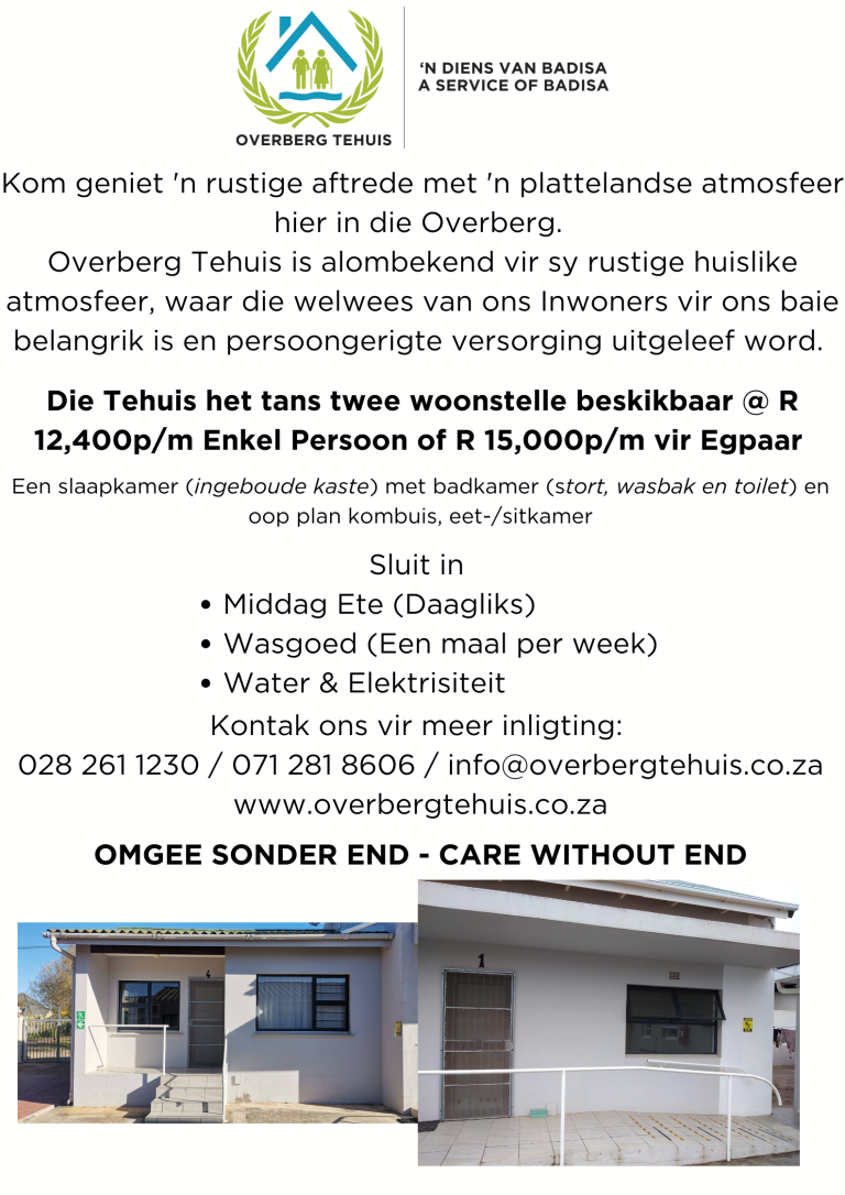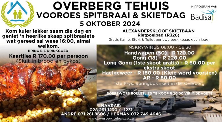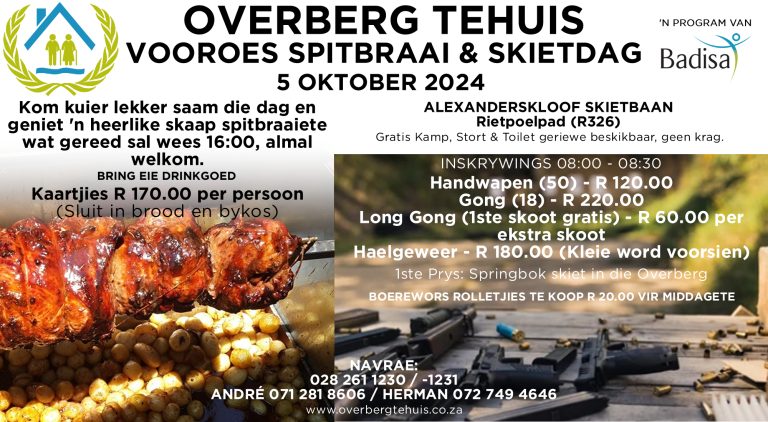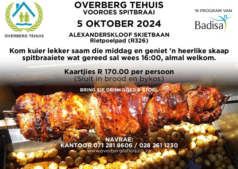 Jammer vir die ongerief, maar dit is buite ons beheer. Ons is elke ondersteuner van Overberg Tehuis innig dankbaar. Dankie vir u begrip.